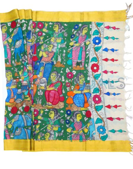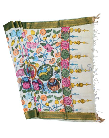 Green hand painted pen kalamakari Chanderi Silk cotton Duppatta