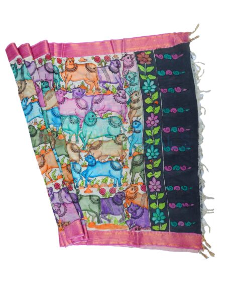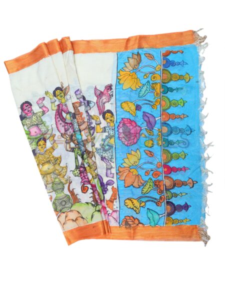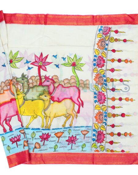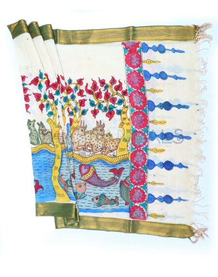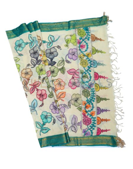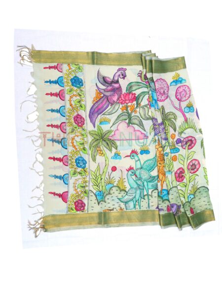 Off-white hand painted pen kalamakari Chanderi Silk cotton Duppatta