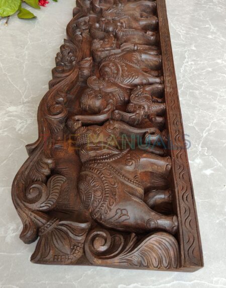 Description: A stunning hand-carved and hand-painted wooden wall art piece featuring an elegant pair of peacocks facing each other, perched gracefully on intricately designed pillars. The rich detailing of the feathers in shades of green, blue, and gold, along with the ornate background carvings, showcases traditional craftsmanship and timeless beauty. This exquisite artwork adds regal charm to any living space, blending heritage artistry with vibrant colors.
